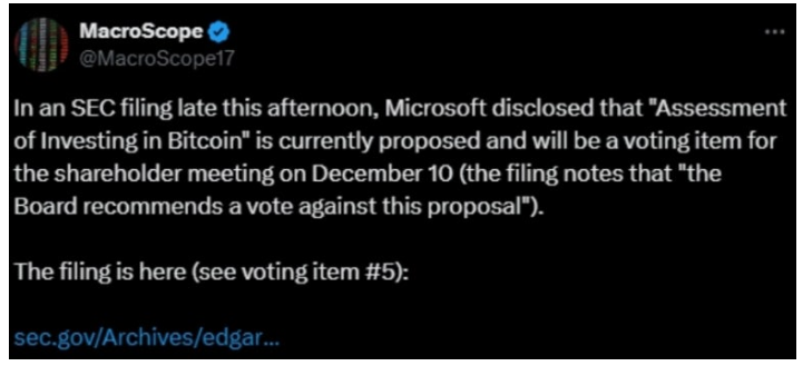 오늘 새벽에 미국 SEC에서 "마이크로스프트가 비트코인 투자에 대한 평가를 제안했다고 밝혔습니다. 이에 따라 12